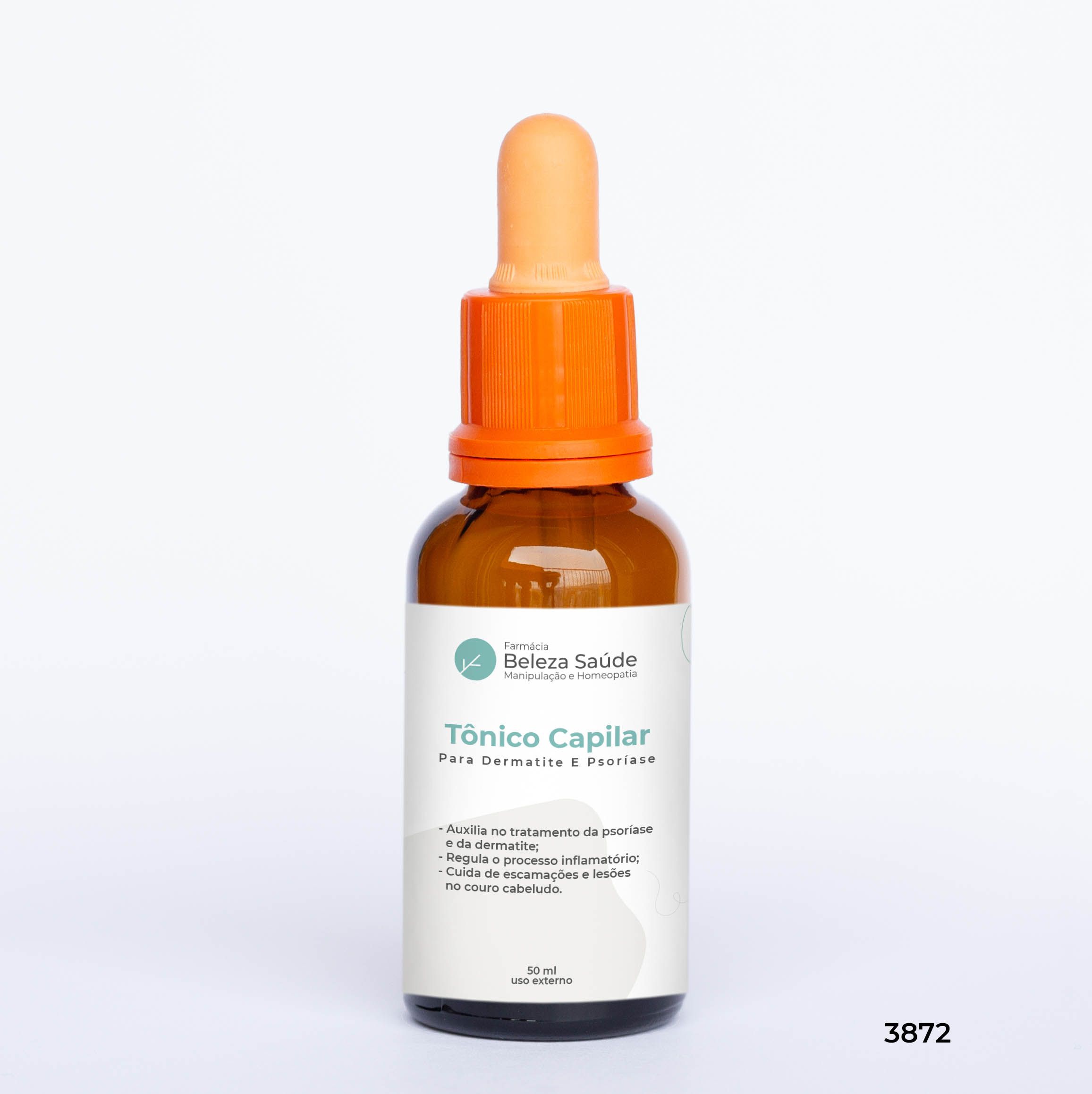 Tônico Capilar para Dermatite e Psoríase ( Ácido Salicílico 3% + Alantoina 2% + Alfa Bisabolol 1% + Extrato Glicólico Camomila 5% + Extrato Glicólico Aloe Vera 3% + LCD (Liquor Carbon Detergens) 2% ) | Solução hidroalcoólica (50°) QSP | Frasco Gotejador