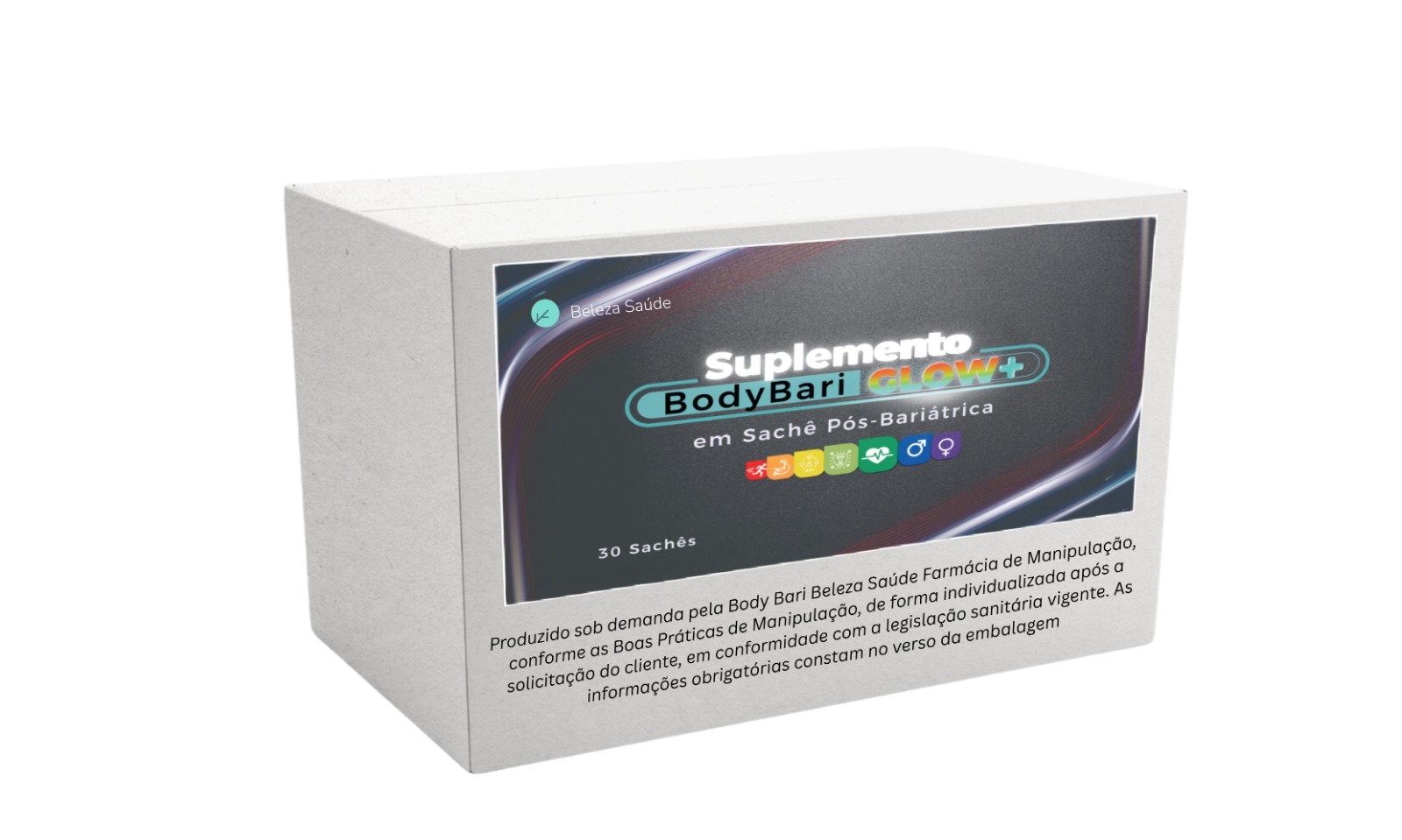 Body Bari Glow+ manipulado em sachê de 10g foi desenvolvido para atender às necessidades específicas de indivíduos que passaram por cirurgia bariátrica, promovendo uma nutrição inteligente para corpo, pele, cabelos e energia. Sua fórmula personalizada, elaborada sob rigoroso controle farmacêutico, combina ativos de alta biodisponibilidade para assegurar máxima absorção, eficácia e segurança, respeitando todas as normas regulatórias da ANVISA. Ideal para promover recuperação, manutenção da massa magra, saúde da pele e cabelos, além de estímulo à disposição e ao bem-estar.
