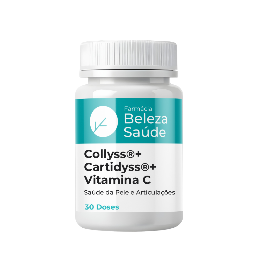Este suplemento manipulado contém 500mg de Collyss®, 160mg de Cartidyss e 300mg de Vitamina C por dose, formulado para oferecer suporte à saúde da pele, fortalecer as articulações e melhorar a elasticidade. Produzido em conformidade com as normas da Anvisa e do CFF, garantindo rastreabilidade, segurança e qualidade na fabricação.