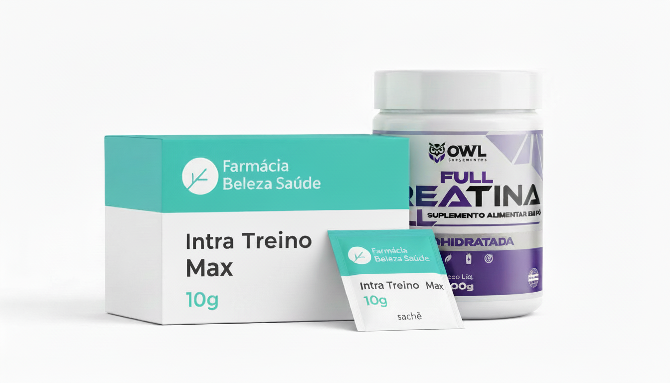 Suplemento alimentar adulto apresentado em kit com duas embalagens: creatina monohidratada em pó 300 g e intra-treino manipulado em 60 sachês. Produto da linha OWL Suplementos (creatina), industrializado com alto padrão de qualidade, combinado com intra-treino manipulado com rigor técnico, garantindo rastreabilidade, controle de qualidade e padronização de cada lote. Produzido com insumos certificados e pureza elevada, seguindo procedimentos que asseguram uniformidade, segurança e consistência equivalente ou superior aos principais suplementos do mercado.