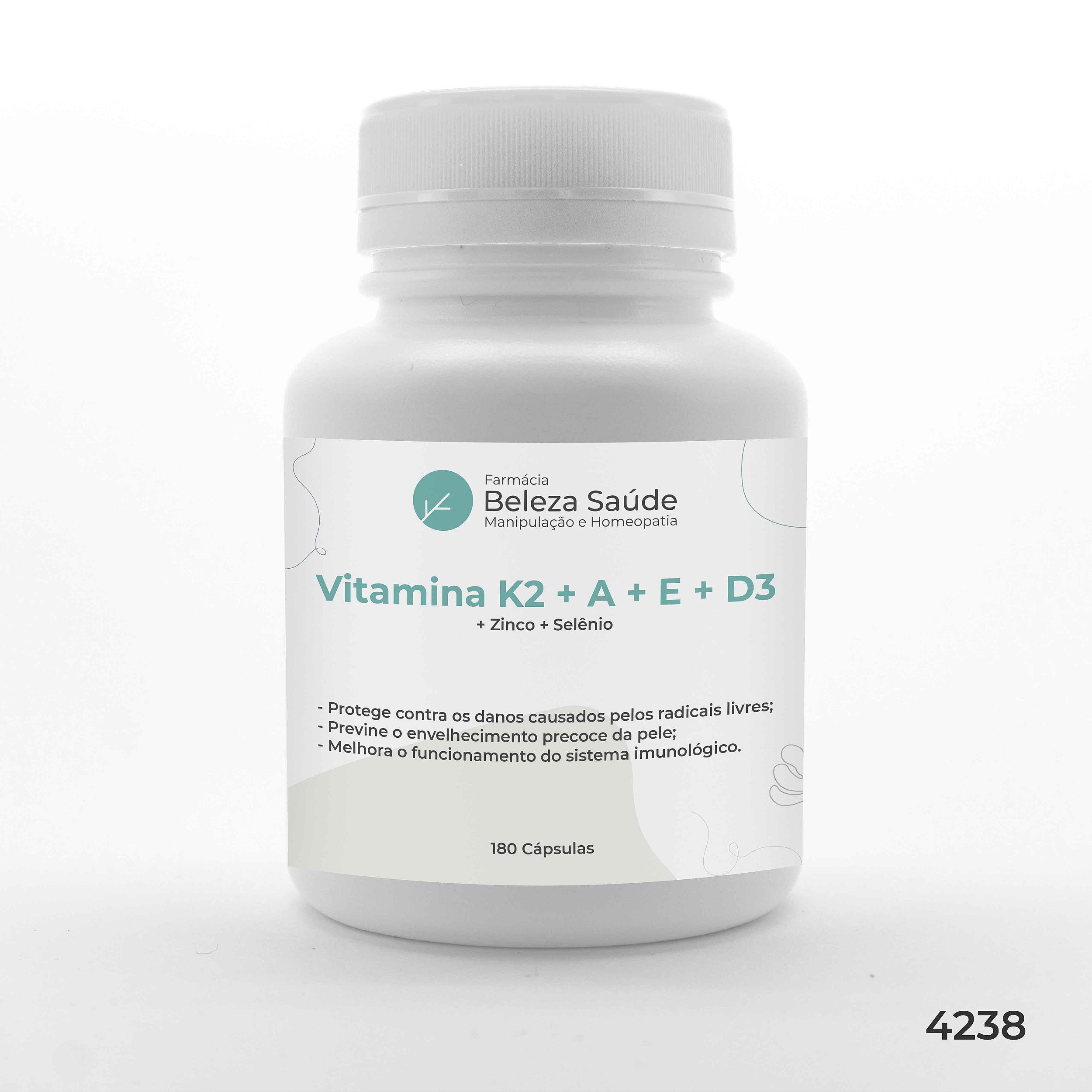 Vitamina K2 MK7 100mcg + Vitamina A 2.000 UI + Vitamina D3 10.000 UI + Vitamina E 400 UI + Zinco Quelato 25mg + Selênio Quelato 100mcg | 180 Cápsulas
